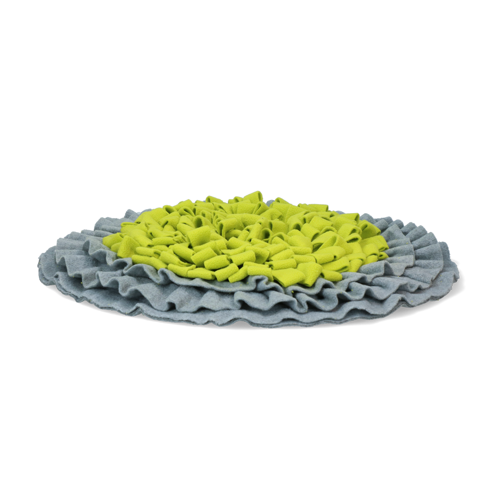 Ce tapis de fouille a été spécialement conçu pour offrir un défi mental stimulant. Placez le tapis au sol, dispersez des croquettes ou friandises sèches, et laissez la fête commencer ! Votre compagnon devra chercher et fouiller pour trouver ses récompenses. Pratique, le tapis se plie facilement pour un rangement et un transport simplifiés.